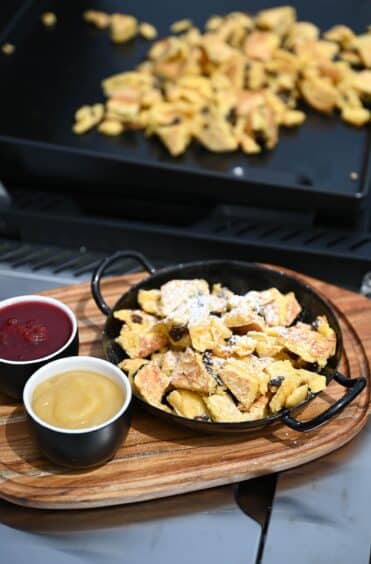 Ein Dessert vom Grill geht einfach immer. Der einfache Kaiserschmarrn von der Plancha ist dabei eine perfekte Wahl.